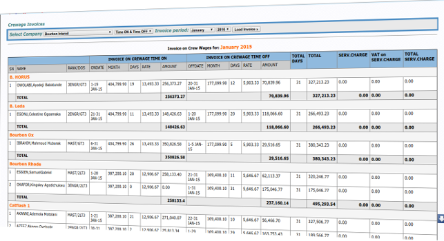 - Payment Categories by Rank,Vessel,Duration Of Service, Client,etc